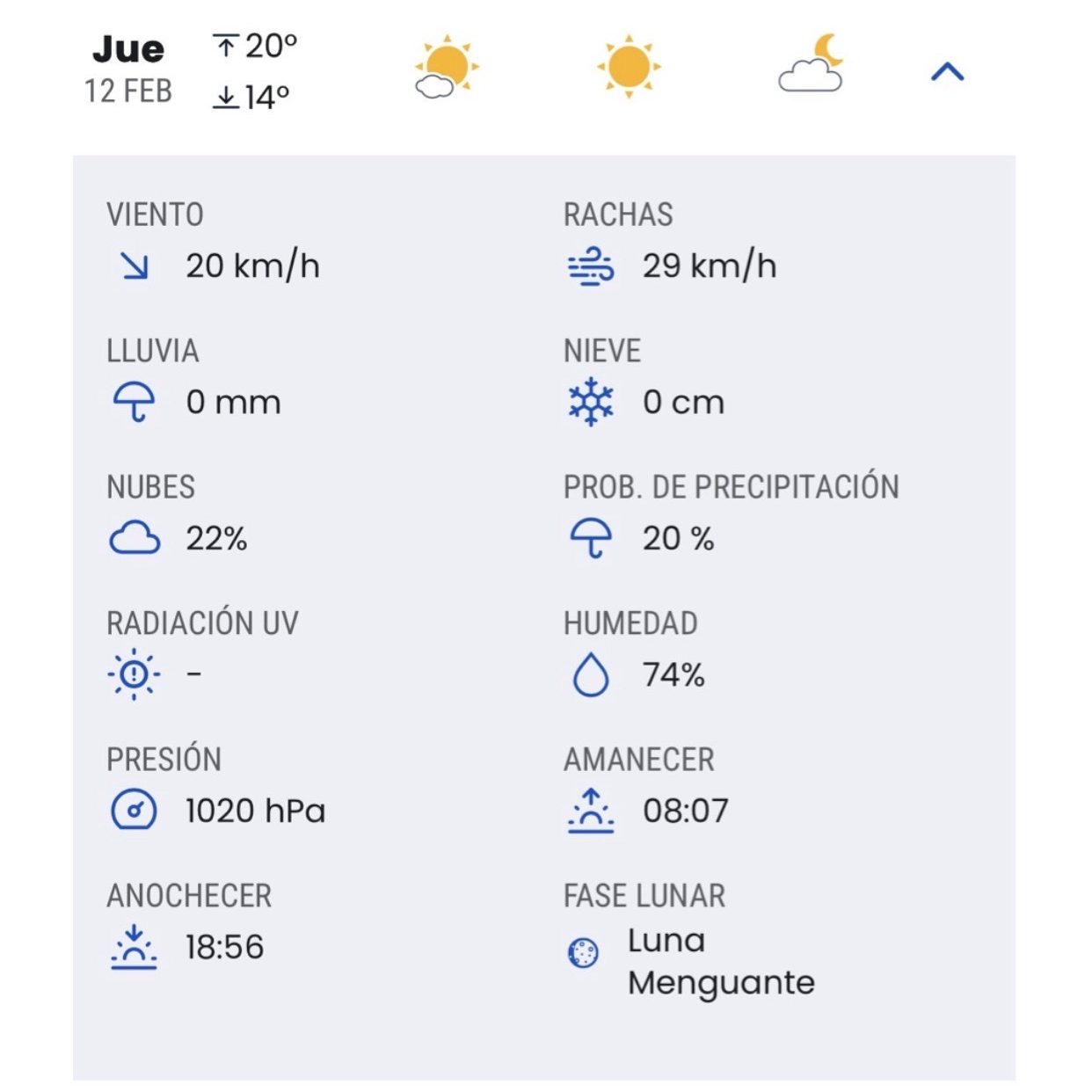 Condiciones climatológicas aproximadas para la fecha establecida.